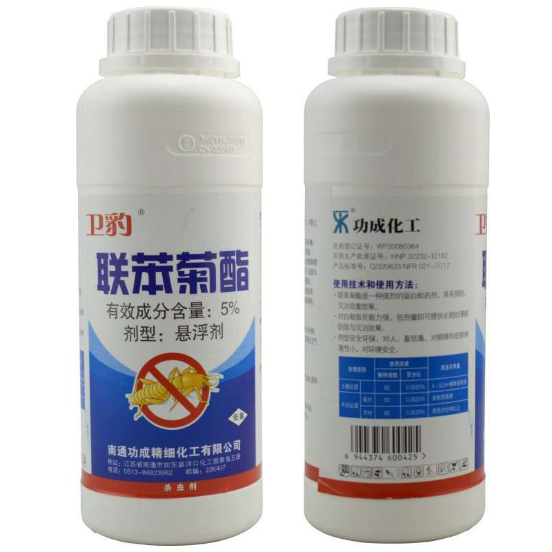 名稱:衛豹聯苯菊酯 有效成分含量:5% 劑型:懸浮劑 凈重量:500克/瓶;20瓶/箱 毒性:低毒 防治對象:白蟻 應用范圍:用于木材、堤壩、建筑物及周邊土壤防治白蟻。